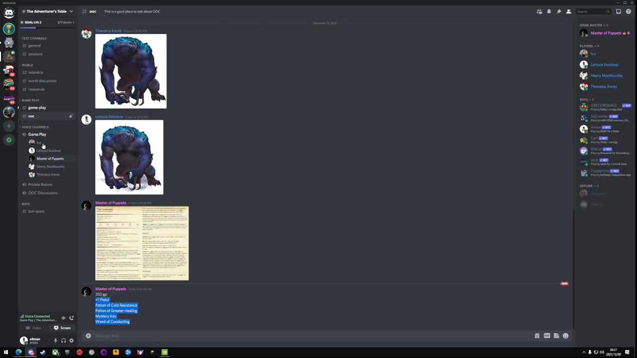 So, we have been playing some DnD lately, and I thought I would stream a session for fun. Terribly amateurish, but if you have NOTHING better to do, pop in.