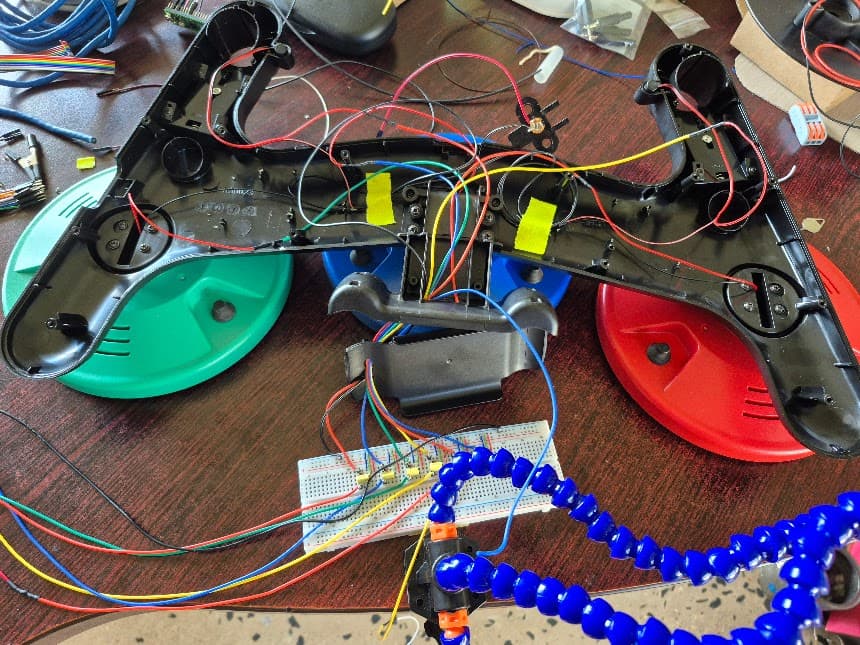 Essentially, what most of these kits do, is have a custom PCB with a Raspberry Pi Pico controller chip on, and then use this to translate the inputs from the guitar buttons to USB so you can use it in the games above. The kit I bought also replaced the fret board with mechanical keys, and RGB lights as well because well why not?? ![]()