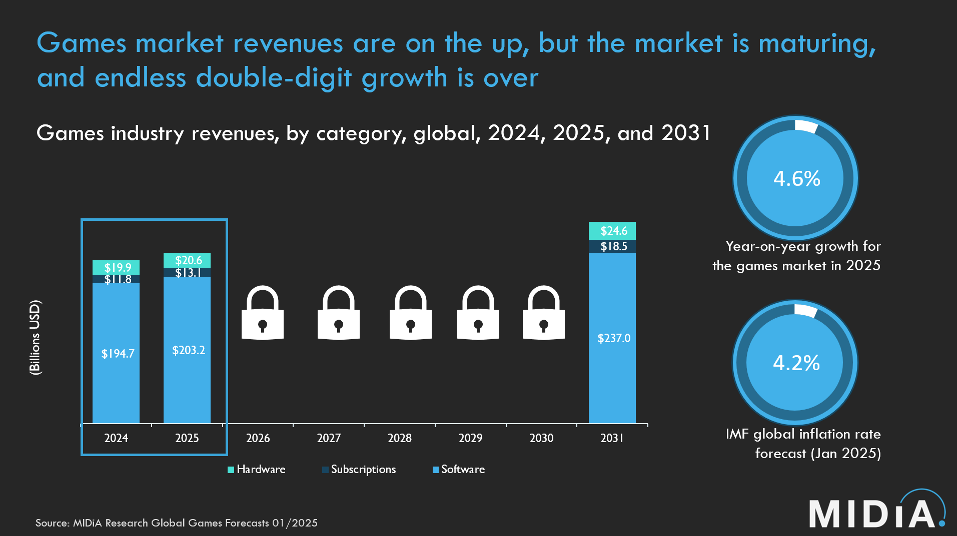 - Supply: New AAA games can take five years or more to make (and often have budgets in the hundreds of millions)