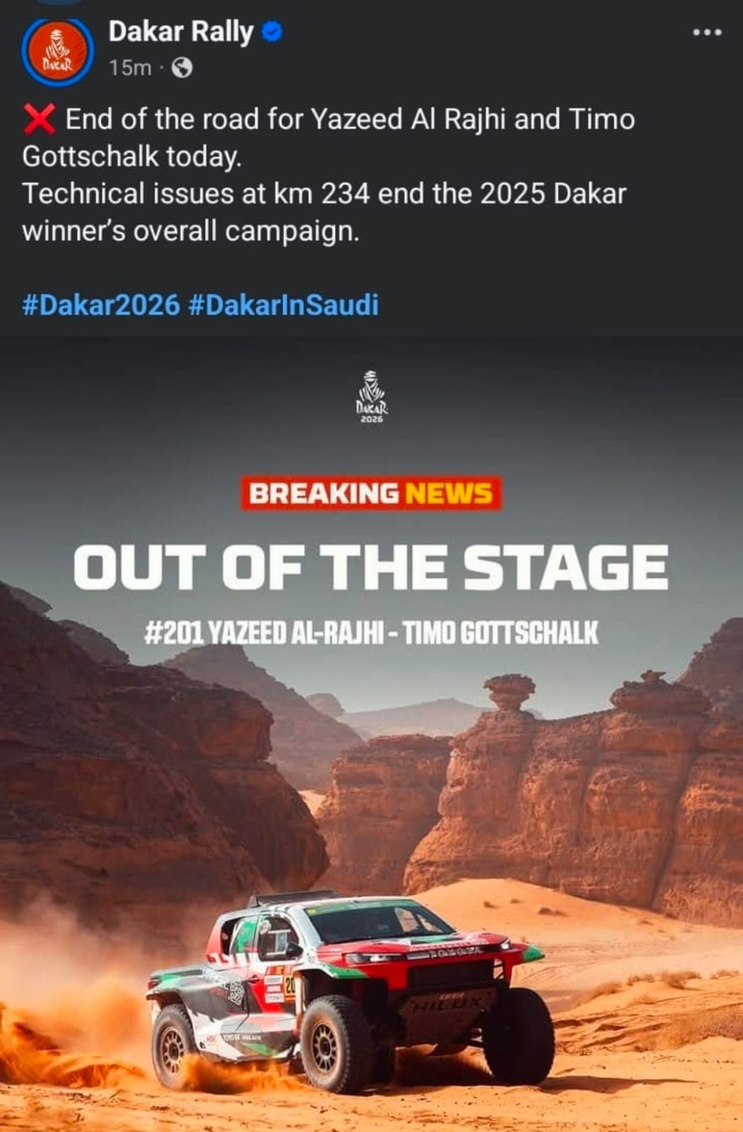 Sad news received late last night from the SA Dakar feed: