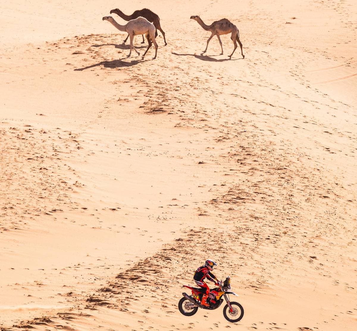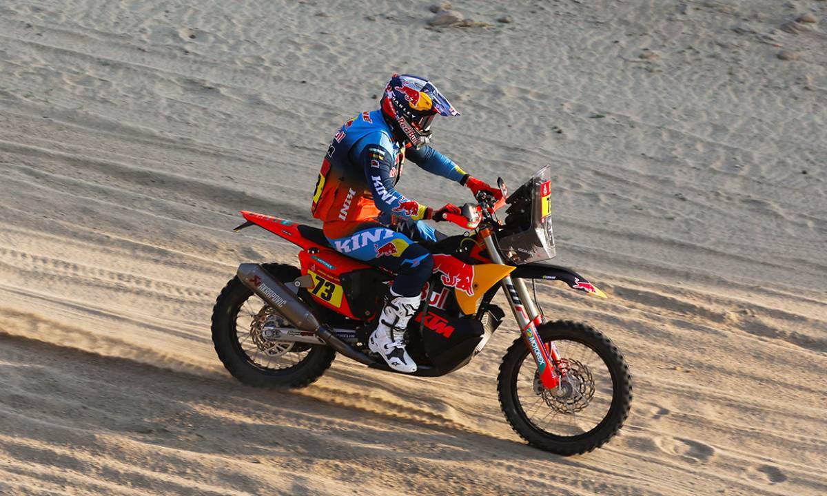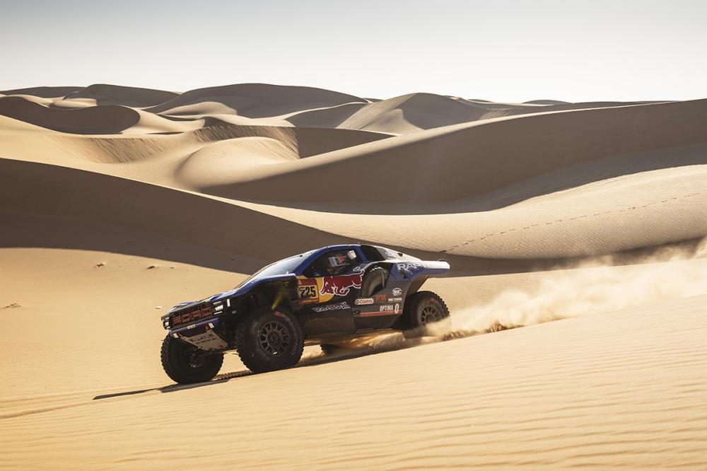 This was a marathon stage split between bikes and cars, which meant no bike tracks in the sand for the cars to follow. Opening the stage became a massive disadvantage, especially through the sandy canyons and later on the open plateaux where wind and recent rain had erased many visual references.