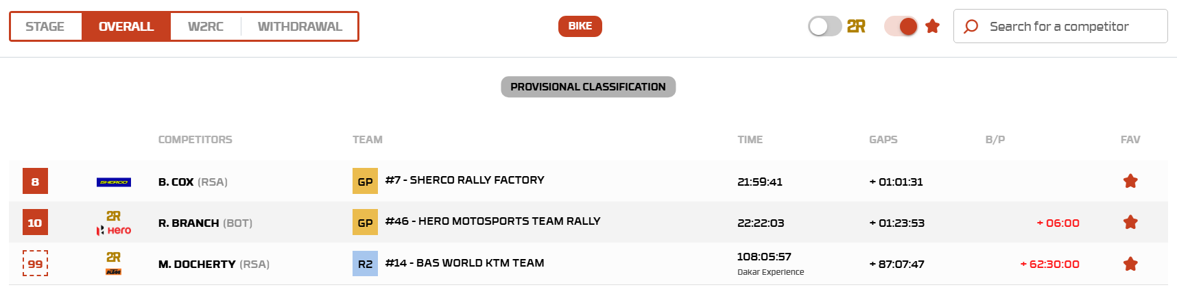 Botterill actually overtook Prokop and Guthrie, but that move came at a cost — it put him directly into the role of stage opener, forcing him to navigate without references. The result was heavy time loss in the sand and on the plateaux. By the end of the day, Guy had lost nearly an hour, compounded by a 15-minute penalty.