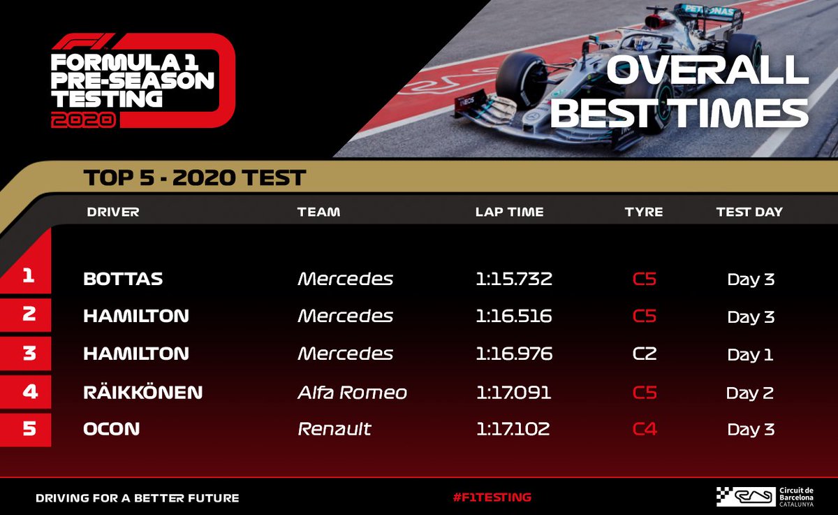 The close of the First Pre-Season Test for 2020, and the top 2 on the timesheets for Day 3 looks eerily familiar, while the rest of the placings look strangely out of place: