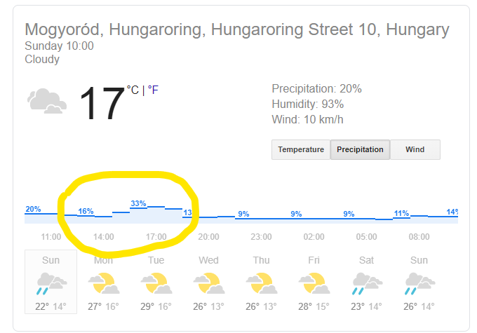 Forecast for around race time does show chance of more rain growing, so maybe, just maybe, we’ll get some wet racing again!
