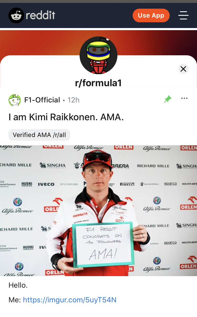 In fact, never imagined that Kimi would even know or care what a Reddit AMA was, although his one word intro is pure Kimi.