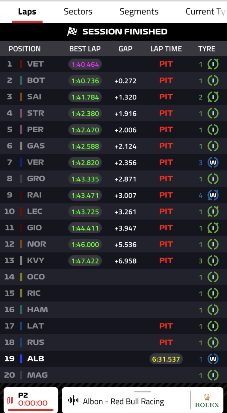 Leclerc looking better there, hoping they can keep this up in the race. Weird to see Red Bull so far down. But Quali can be much different.