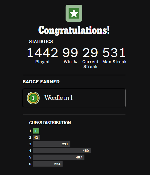 (It was a completely random guess. I was tempted to lookup an unused word and keep that as my starter until it happened.)